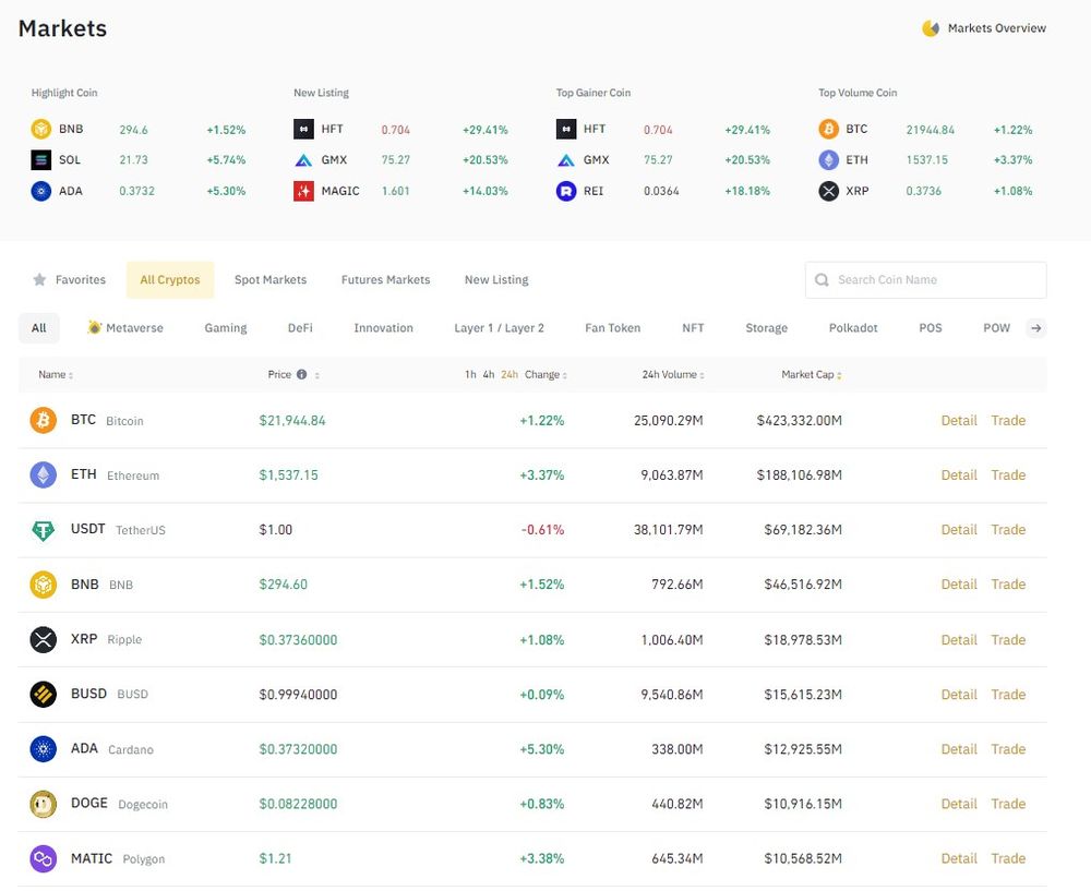 - Wide range of cryptocurrencies: Binance offers a huge selection of cryptocurrencies, including some of the most popular and widely-traded coins like Bitcoin, Ethereum, and Ripple, as well as a number of niche coins and tokens. This means that no matter what kind of crypto you’re interested in, you’re likely to find it on Binance.
